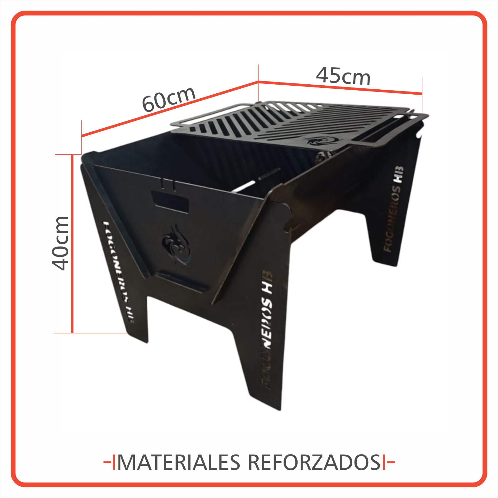 Emparrillado 40 x 40 diseñada para una cocción pareja y eficiente, apta para el uso con leña o carbón.